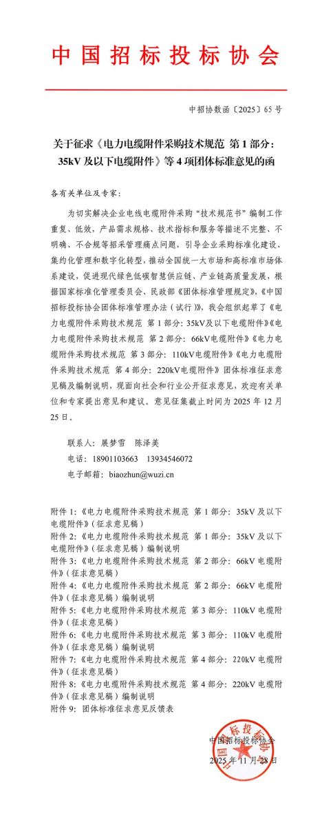 附件1:《电力电缆附件采购技术规范 第1部分:35kV及以下电缆附件》(征求意见稿)