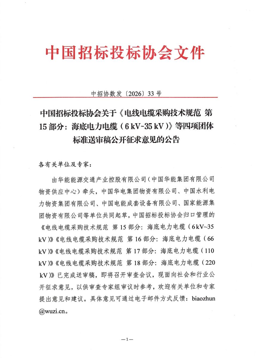 附件1:《电线电缆采购技术规范 第15部分:海底电力电缆(6 kV~35 kV)》(送审稿)