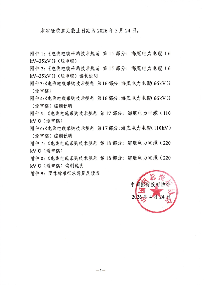 附件3:《电线电缆采购技术规范 第16部分:海底电力电缆(66 kV)》(送审稿)