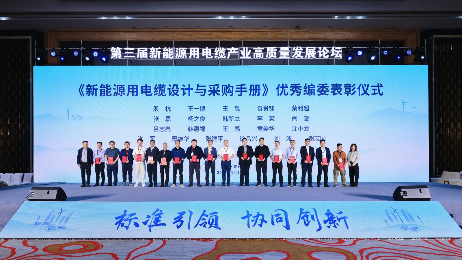 【物资云讯】4月18日,《新能源用电缆设计与采购手册》(以下简称“《手册》”)编委表彰仪式在“2025新能源用电缆产业高质量发展论坛暨《新能源用电缆设计与采购手册》首发仪式”上盛大举行,来自大型央国企采购用户、知名设计与建设单位、检验检测与认证机构、电线电缆制造企业、原辅材料企业和第三方产品大数据、质量监造、电线电缆行业商协学会等单位的一百多位手册编委及企业代表出席表彰仪式,共同见证了这一激动人心的时刻。